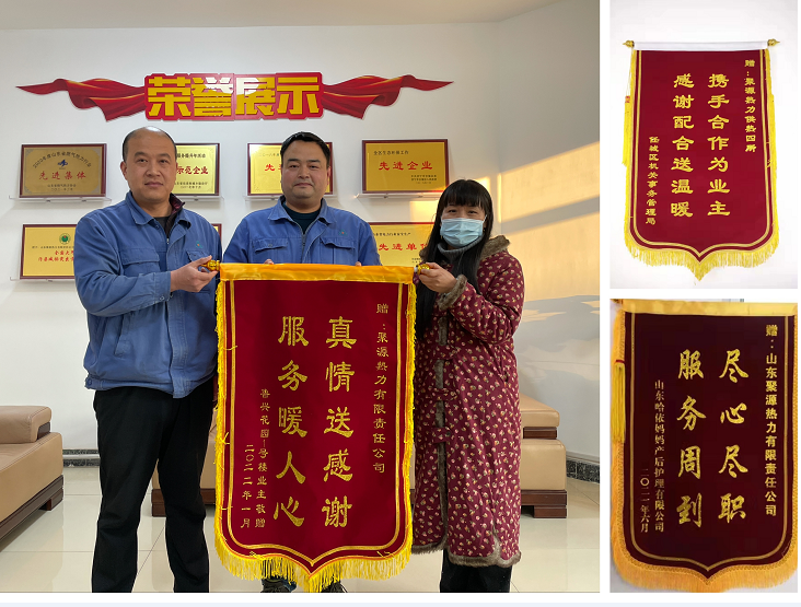 金杯銀杯不如老百姓的口碑,一年的努力,得到了區(qū)住建局的書面表揚:“聚源熱力公司以民生為己任,不計成本、不講條件,全面推行“網格化管理”,確保了平穩(wěn)運行,特別是針對老舊小區(qū)多的現(xiàn)狀,采取提高供熱參數(shù)等措施,確保居民溫暖過冬” 。去年聚源熱力公司獲得山東省燃氣熱力協(xié)會“先進集體”、今年聚源熱力供熱五所獲得山東省燃氣熱力協(xié)會“優(yōu)秀團體”,取得熱電集團2021年12月份對標評比“第一名”的好成績。一面面鮮紅的錦旗、一封封滿懷深情的表揚信、一條條情深意切的條幅最能體現(xiàn)出人民群眾對國企擔當?shù)恼J可、對熱電管理的認可、對“好溫暖”品牌服務的認可。